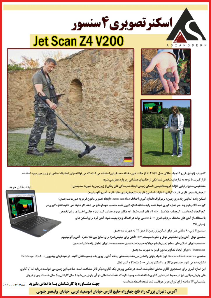 جت اسکن Z4 V200 ،گنجیاب ژئوفیزیکی و گنجیاب طلای مدل Z4 V200